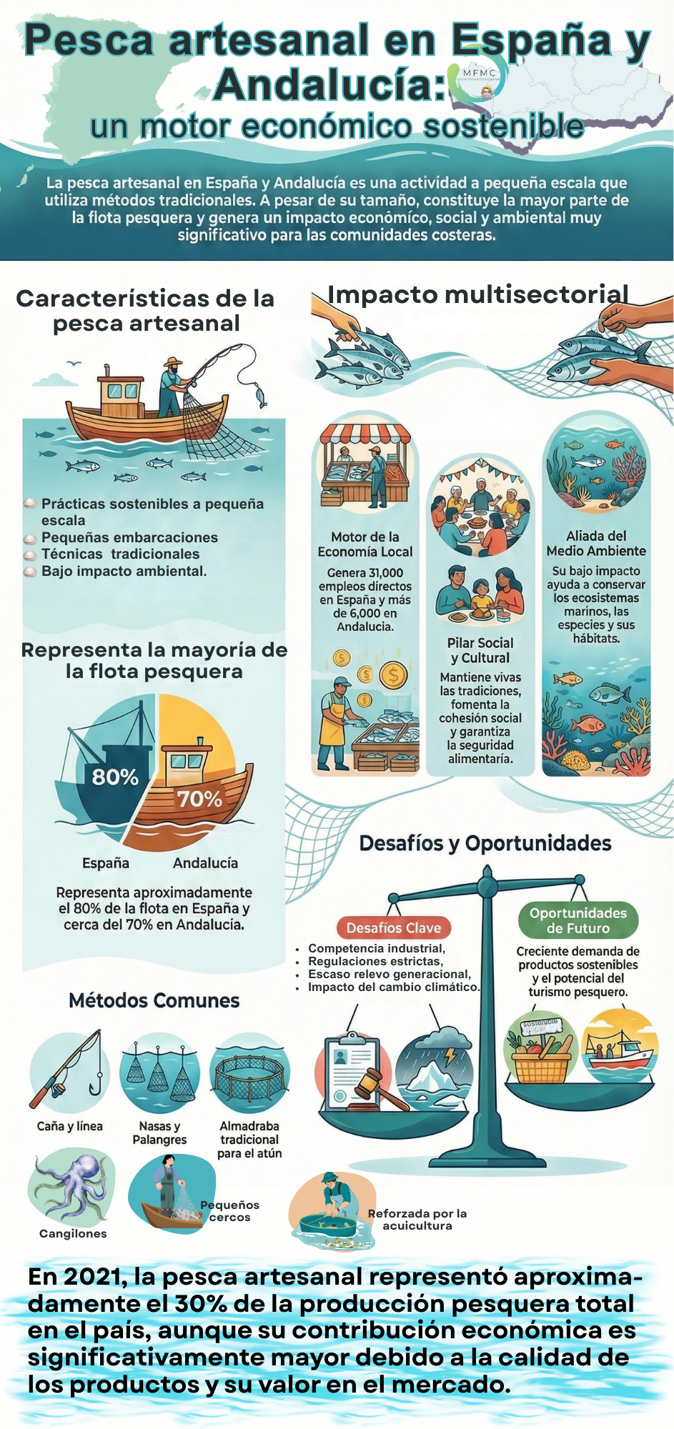 La pesca artesanal en España y Andalucía es una actividad económica vital que combina la sostenibilidad ambiental con el desarrollo económico y social. A pesar de los desafíos que enfrenta, su relevancia en la economía actual es indiscutible, y su preservación es esencial para el futuro de las comunidades costeras.